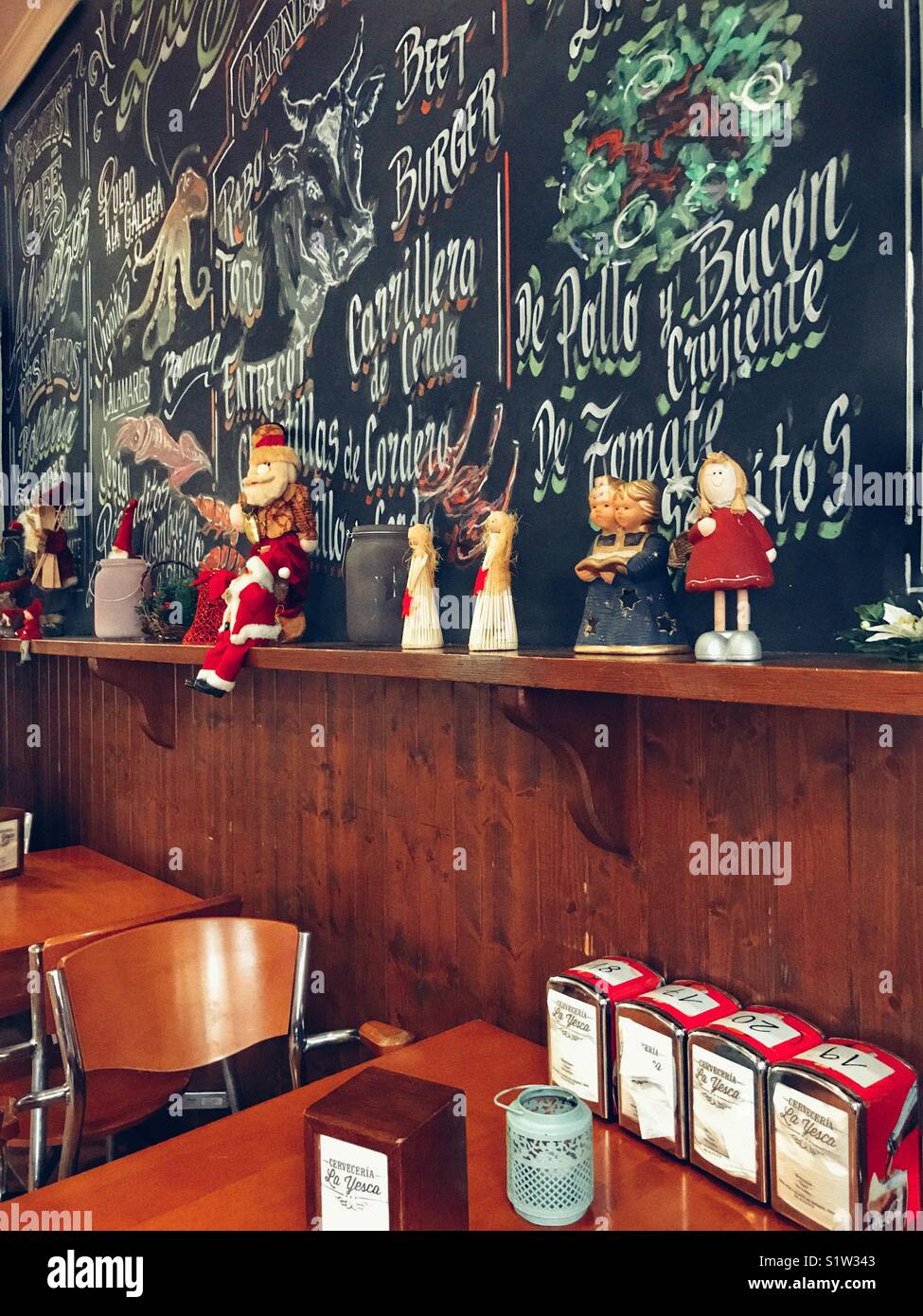 Lavagna A Parete Con Menu Scritto In Gesso Tempo Di Natale In Spagnolo Un Snack Bar Ristorante Foto Stock Alamy