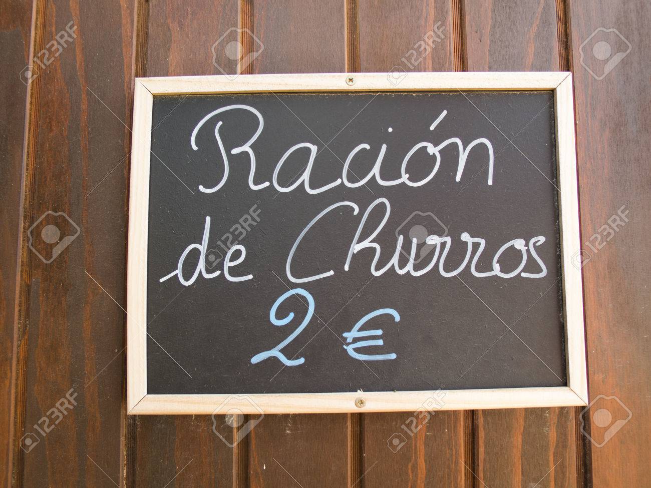 Immagini Stock Cartello Bianco Scritto A Mano Spagnolo Bianco In Parete Con I Tipici Piatti Di Cibo Menu Come Razione Churros In Spagna Ristorante Image