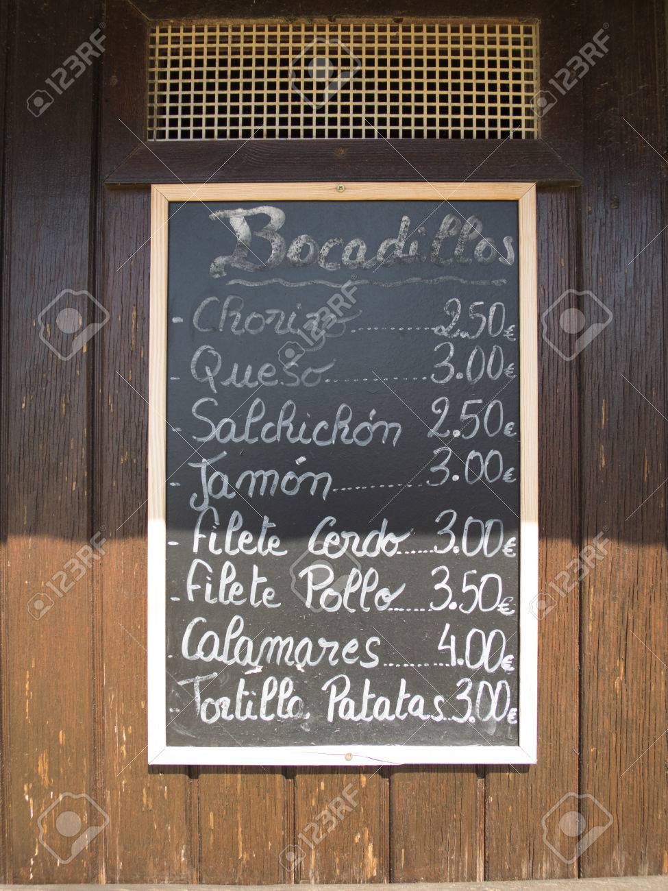 Menu Scritto In Spagnolo