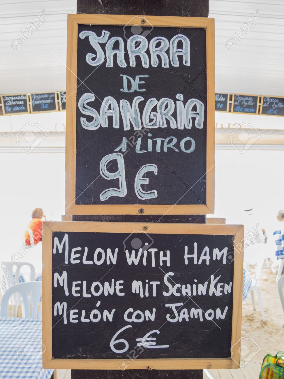 Menu Scritto Su Lavagne A Uno Spagnolo Ristorante Sul Mare In Inglese E Tedesco Foto Stock Alamy