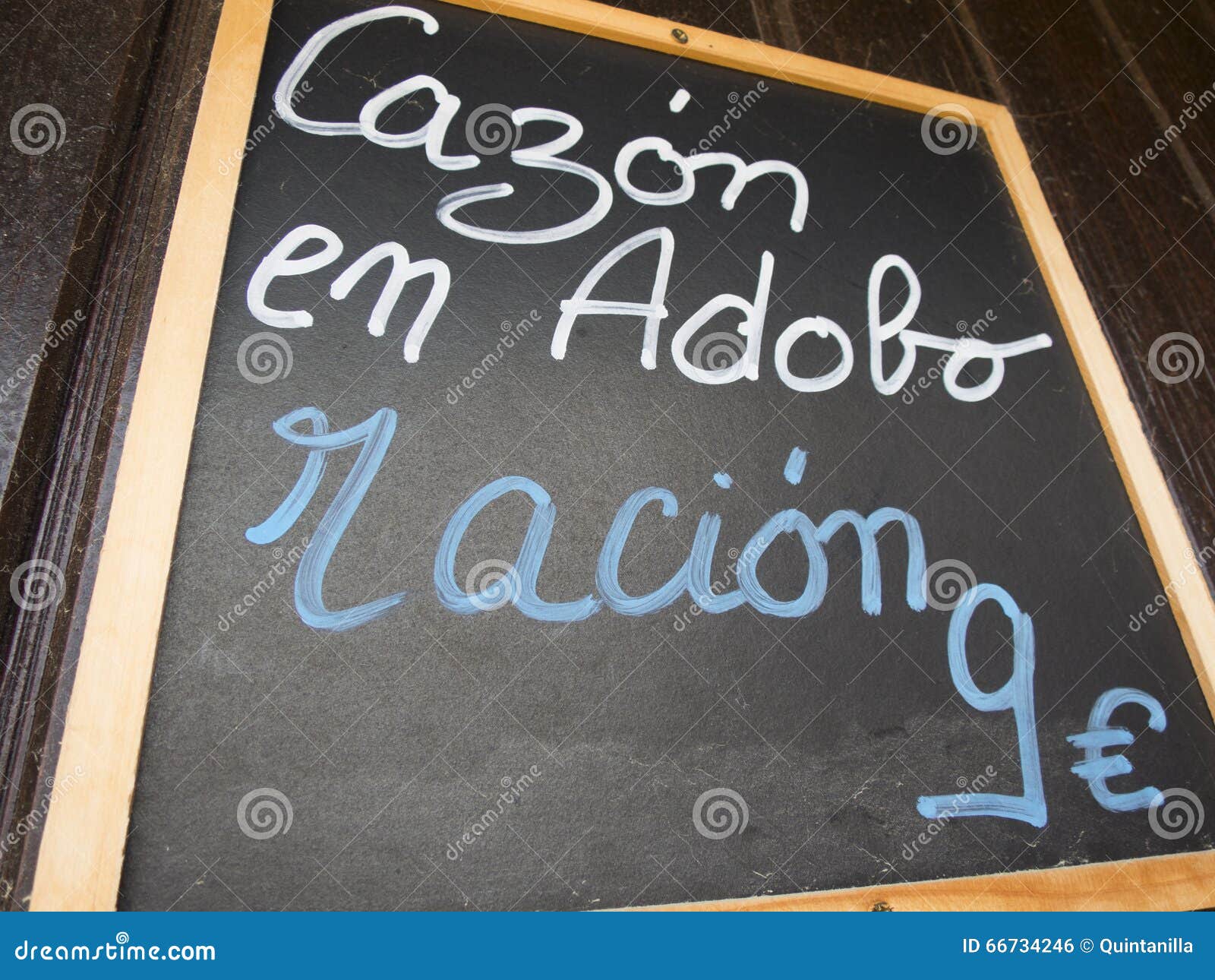 Lavagna Con Dello Spagnolo Un Menu Giornalmente Immagine Stock Immagine Di Pane Commerciale
