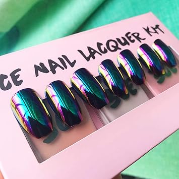 Nyjnn Unghie Finte24 Pezzi 12 Diverse Dimensioni Di Bare Che Cambiano Colore Con Specchio Magico Verde Riflesso Lunghezza Media Copertura Completa Unghie Finte E Disegni Amazon It Bellezza