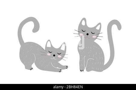 Gatti Grigi E Bianchi Carini In Una Posizione Diversa Gioca A Gattino Divertente Illustrazione Vettoriale Illustrazione Di Lanuginoso Gatto