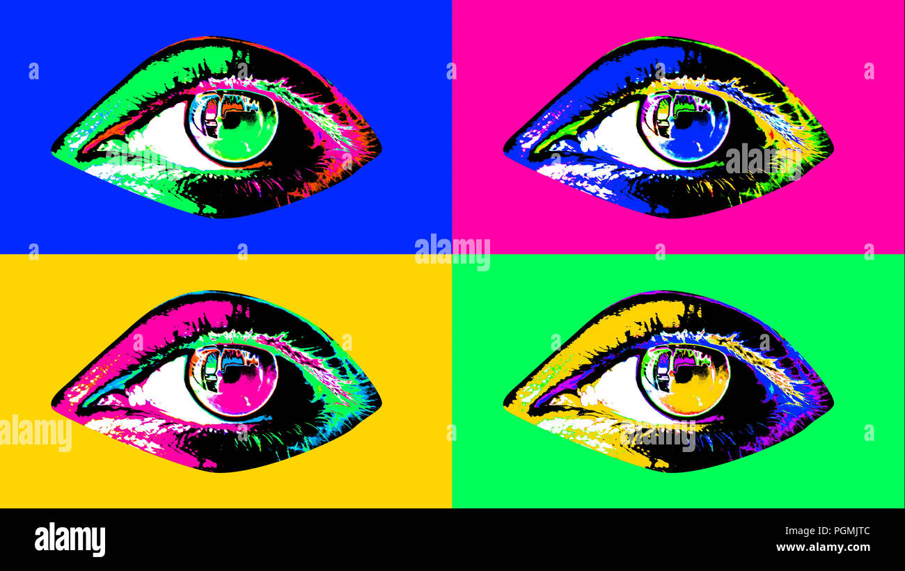 Un Viaggio Panoramico In 3d Illustrazione Di Quattro Attraente Femmina Umana Occhi Scuri Di Alunni E Colorati Di Iridi E Retine Di Sfarfallio In Rosea Insalata Giallo E Foto Stock Alamy
