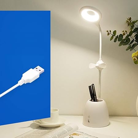Lampada A Led Oscuramento Della Lampada Dell Occhio Senza Sfarfallio Lampada Da Tavolo Con La Penna Ventilatore Controlli Sensibili Al Tocco Dormitori Studio Luce Notturna A Doppia Spina Di Carica Amazon It Casa E