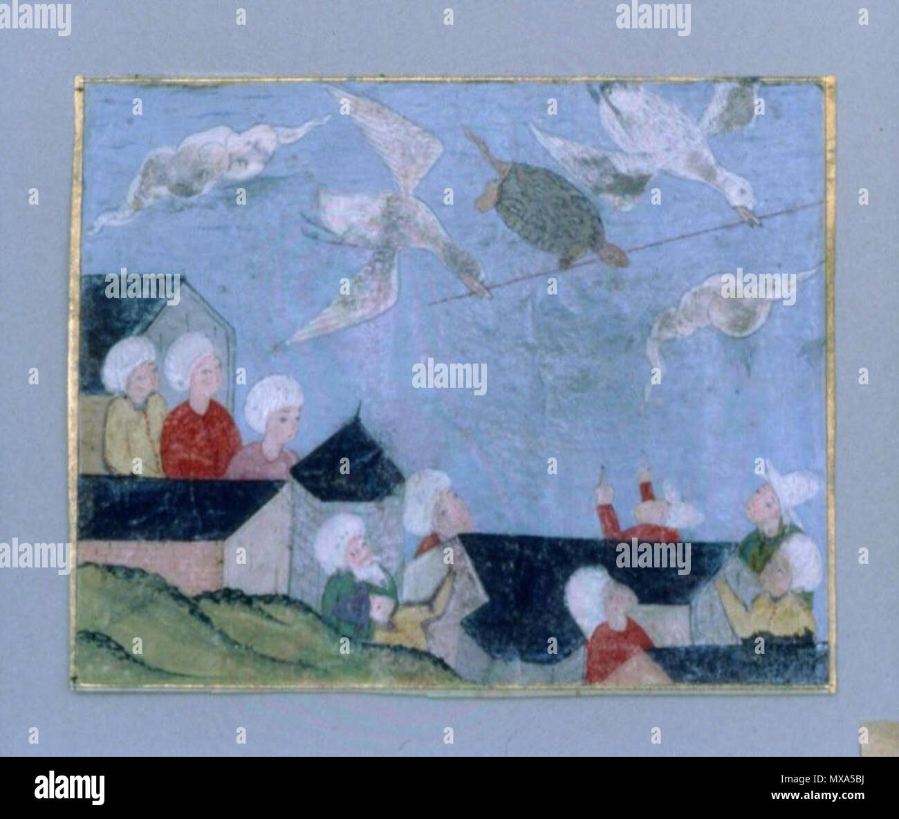 Inglese Una Illustrazione Del W La Tartaruga E La Storia Di Oche Acquerello Opaco Oro E