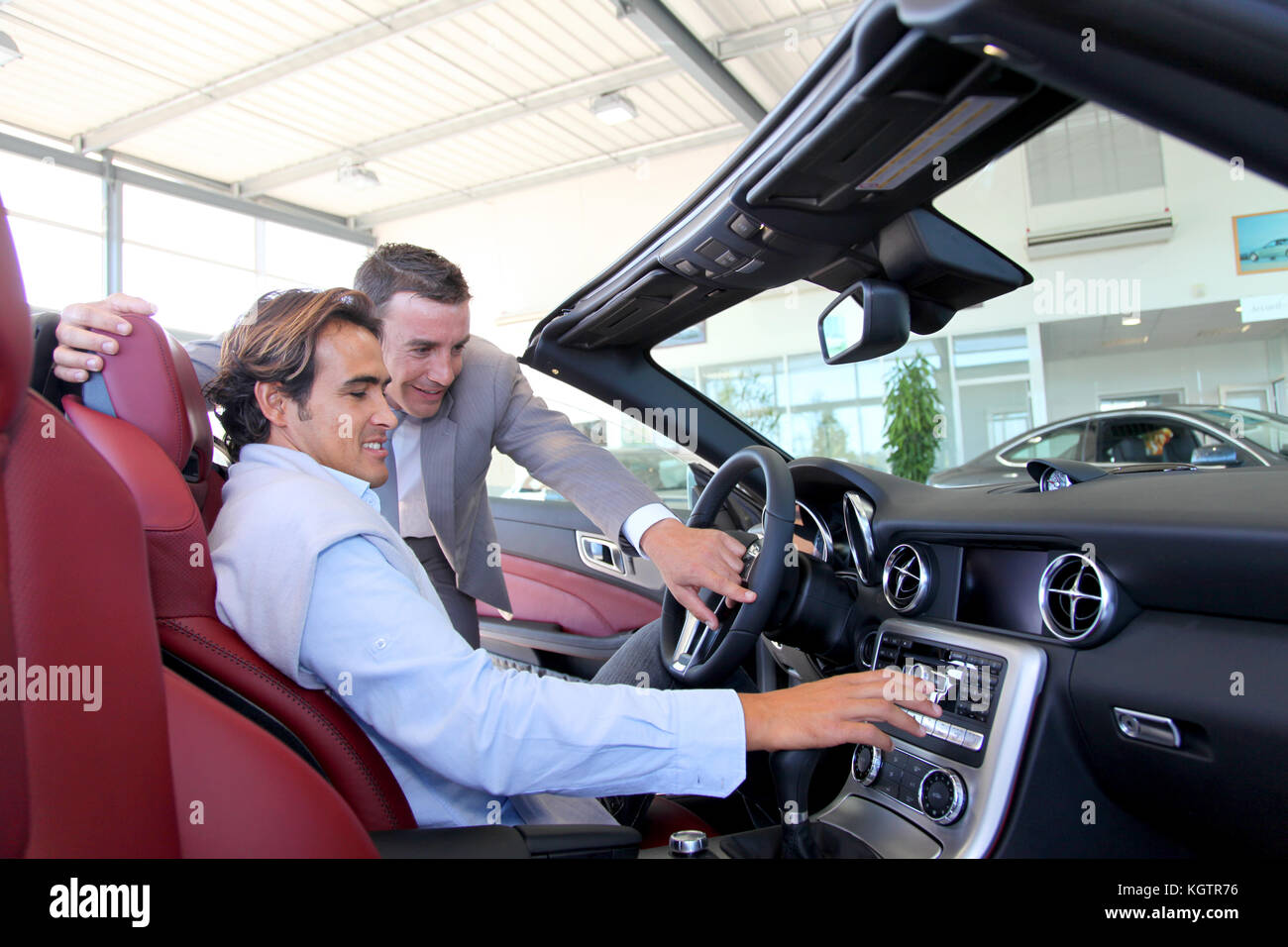 Venditore Di Auto Che Mostra I Dettagli Interni All Acquirente Foto Stock Alamy
