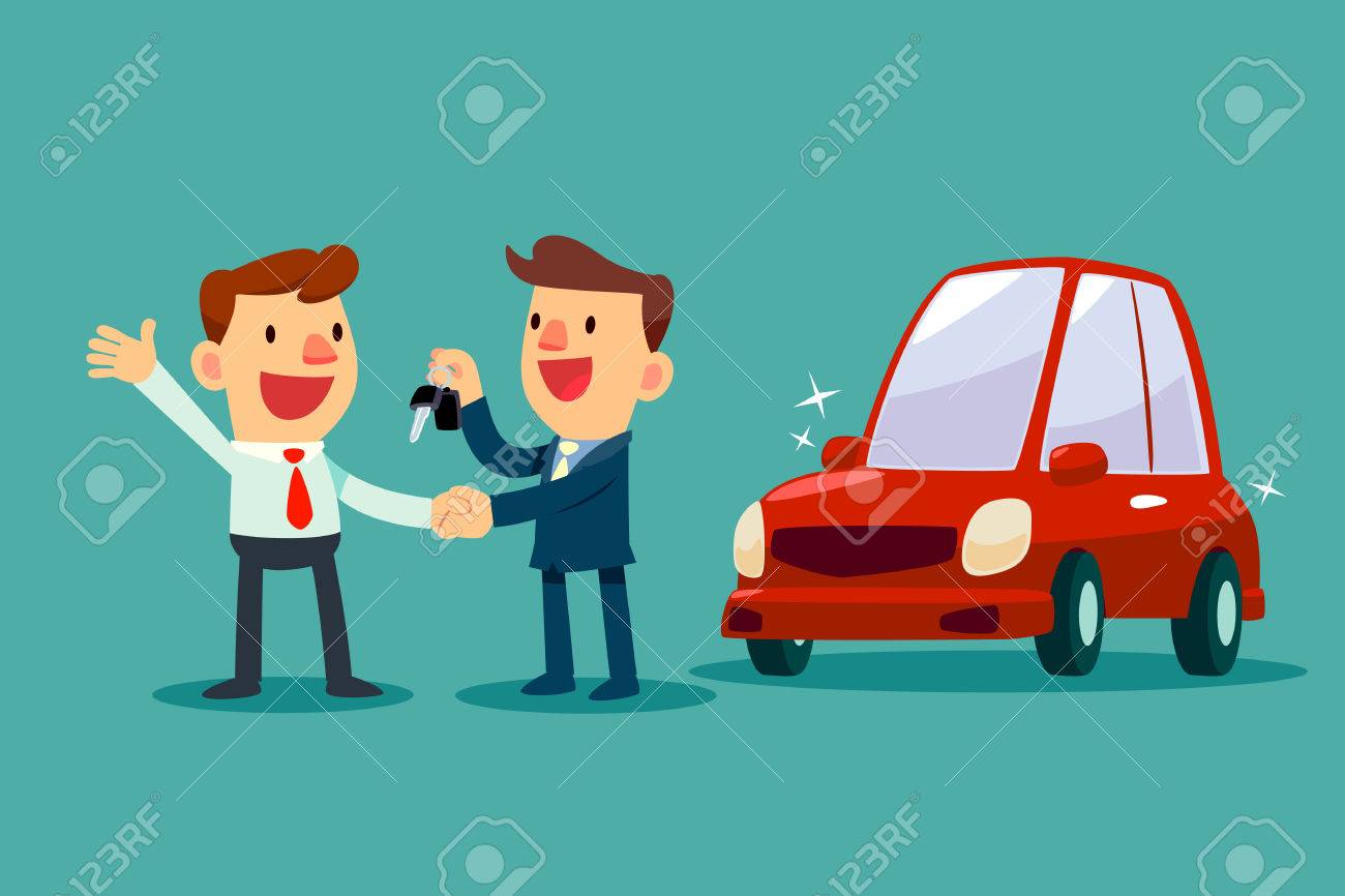 Vettoriale Il Venditore Di Automobili Da Una Stretta Di Mano E Una Chiave Di Auto Nuova Per L Uomo D Affari Vendita Auto Concetto Di Business Auto Image