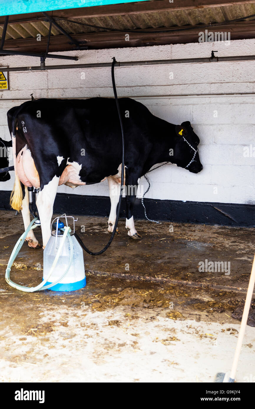 La Mungitura Di Una Mucca Mucche Frisone Milker Disegno Macchina Latte Di Mammella Mammelle Regno Unito Inghilterra Gb Foto Stock Alamy