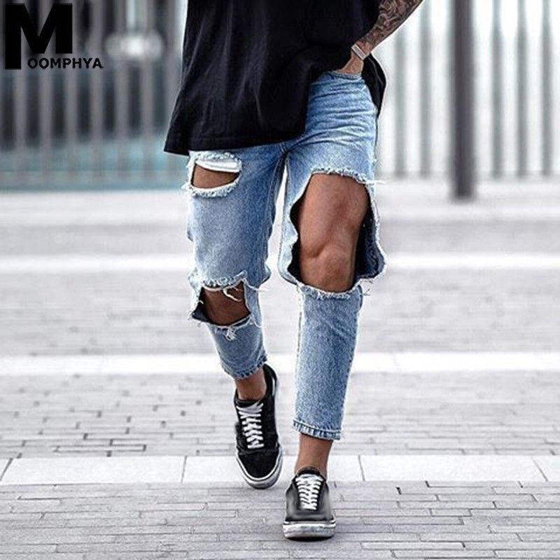 21 Moomphya New Distressed Big Holes Skinny Jeans Men Streetwear Hip Hop Mens Ripped Jeans Denim Pants Stylish Men Blue From Bigseaa 26 05 Dhgate Com
