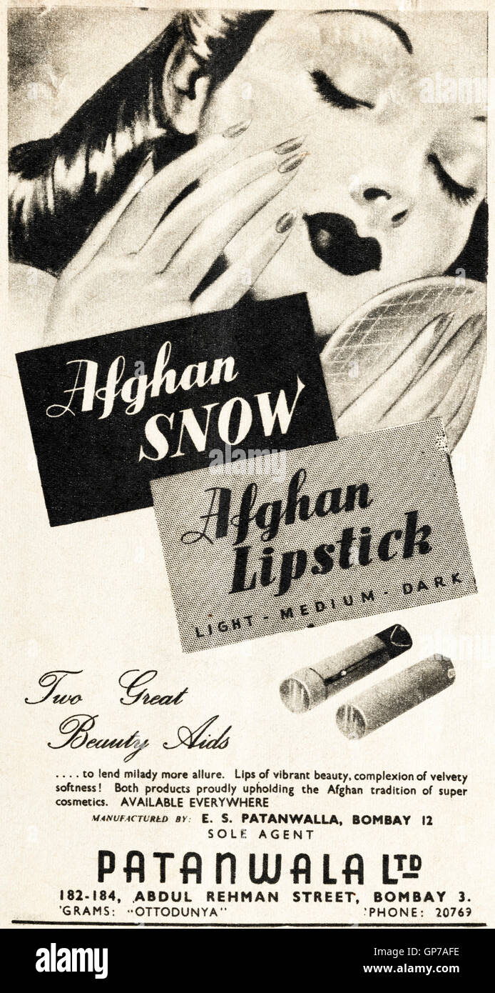 Pubblicita Pubblicita Afghan Neve Rossetto Cosmetici Da Patanwala Di Bombay Originale Vecchia Vintage Annuncio Dalla Lingua Inglese Magazine Pubblicato In India Datata 1945 Foto Stock Alamy