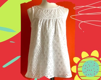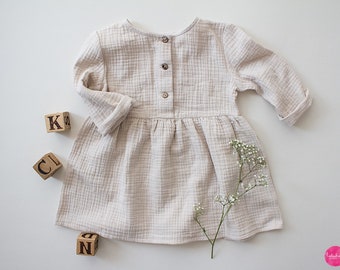 Abito Bambina Cotone E Lino Bianco Con Tulle Fatto A Mano Battesimo