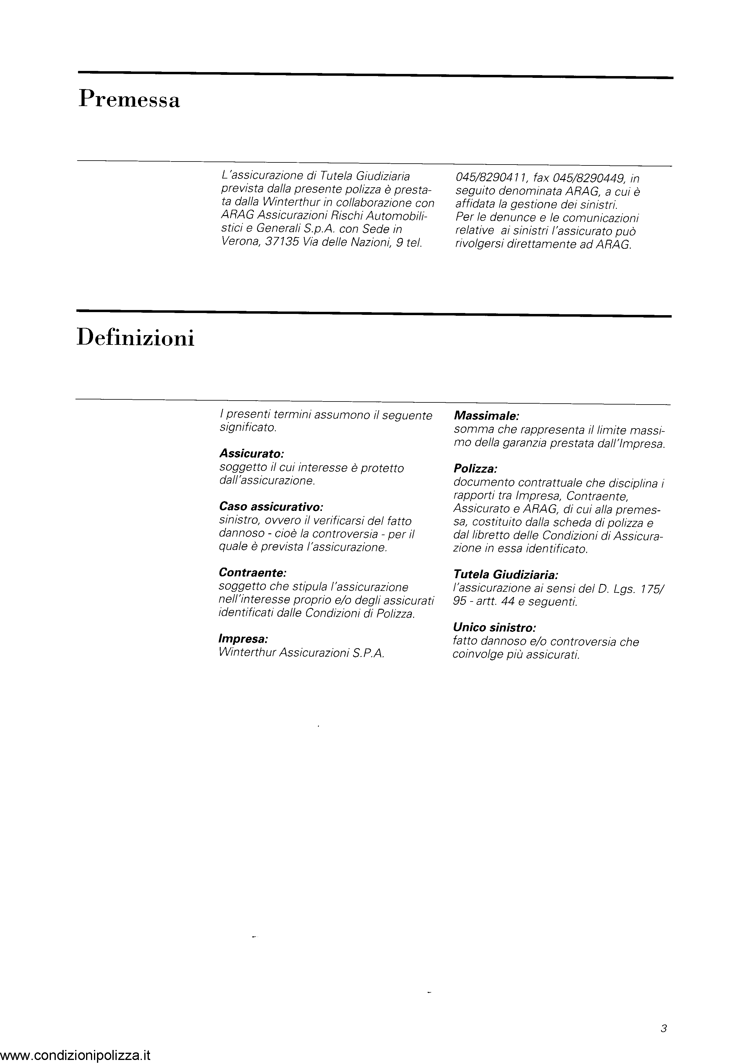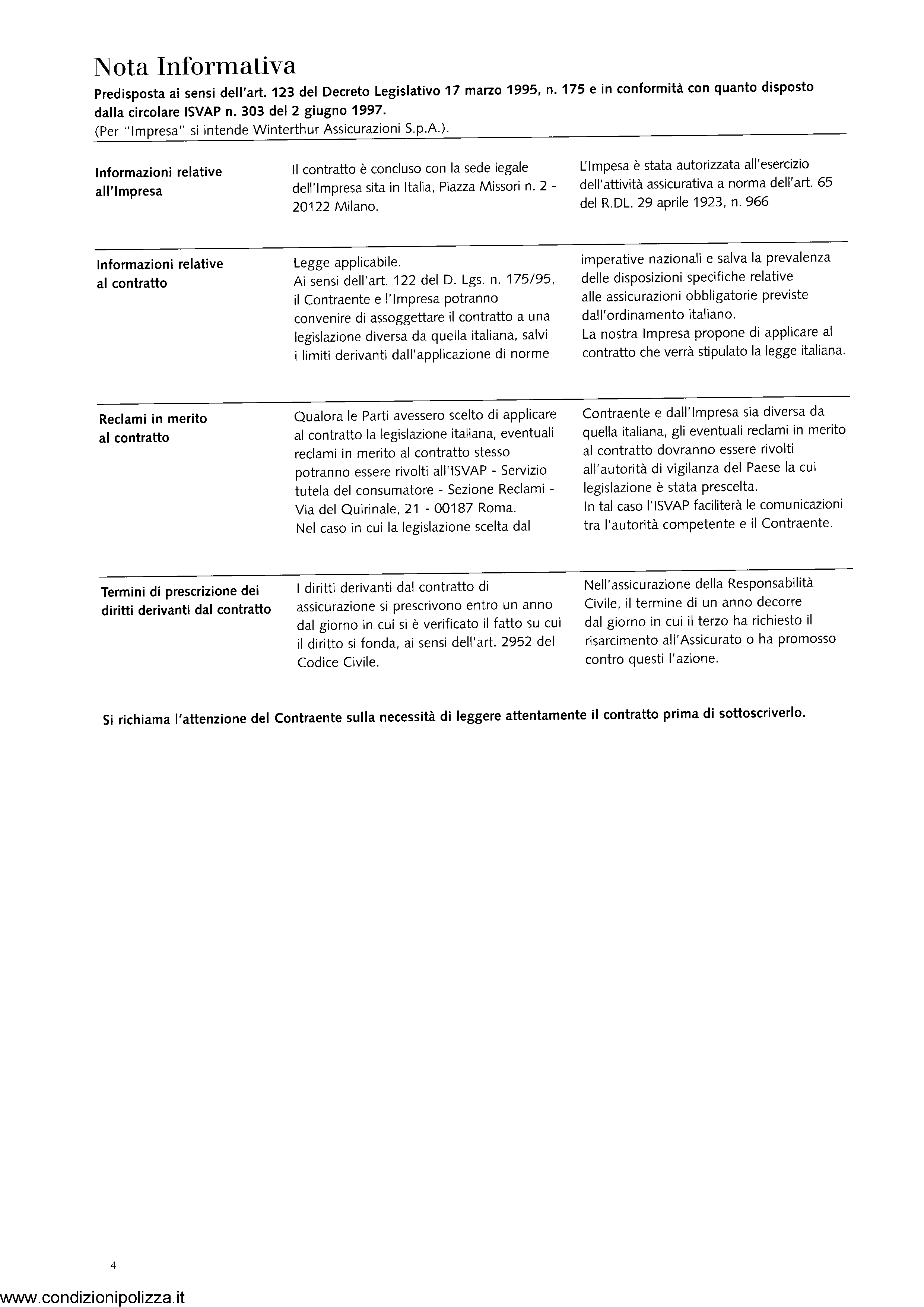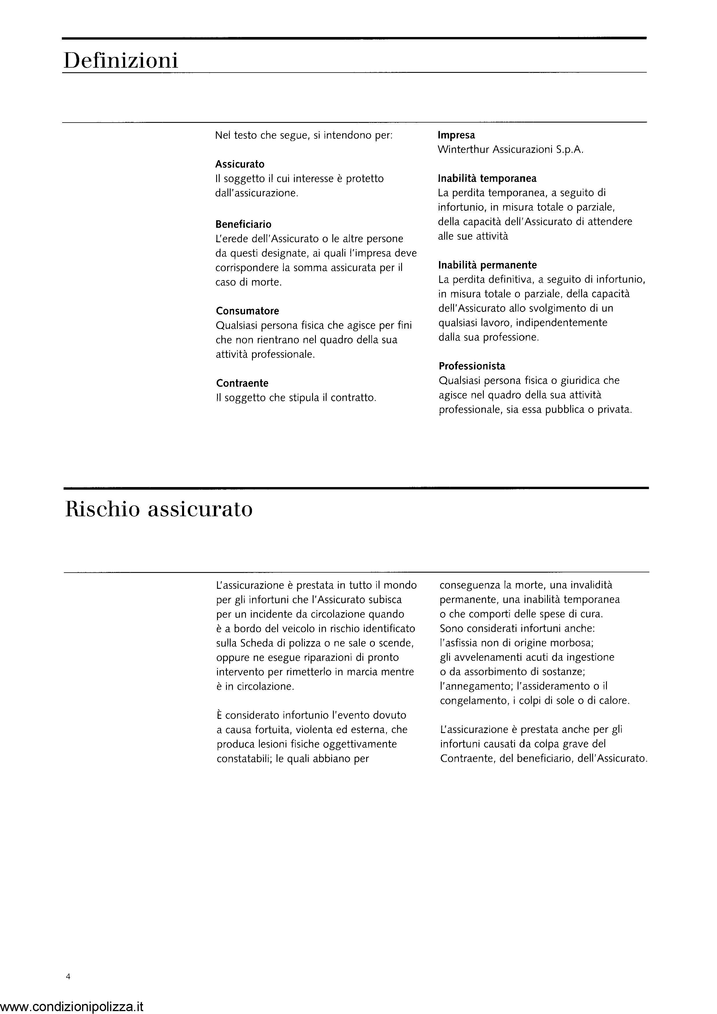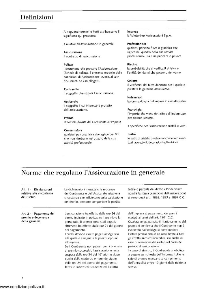 Winterthur Condizioni Polizza
