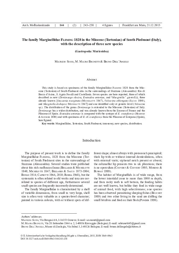 Pdf The Family Marginellidae Fleming 18 In The Miocene Tortonian Of South Piedmont Italy Mwith The Description Of Three New Species Gastropoda Muricoidea Mauro Brunetti Bruno Dell Angelo And Maurizio Sosso