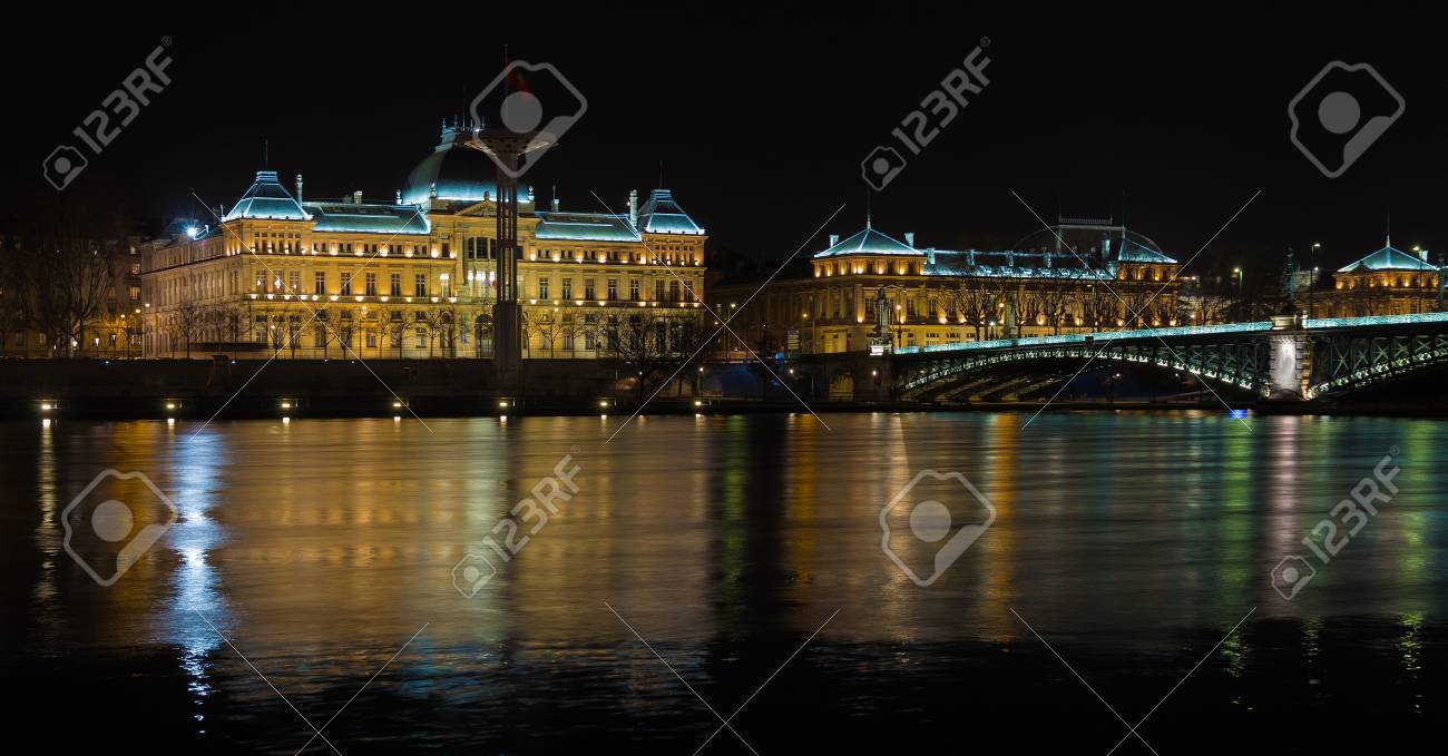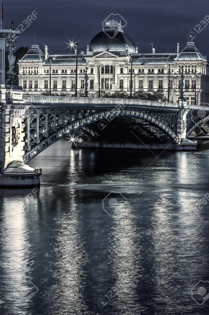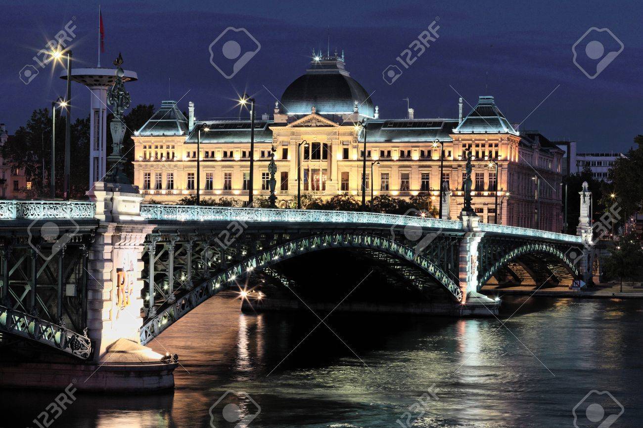 Immagini Stock Vista Del Famoso Ponte E L Universita Di Lione By Night Image 8428