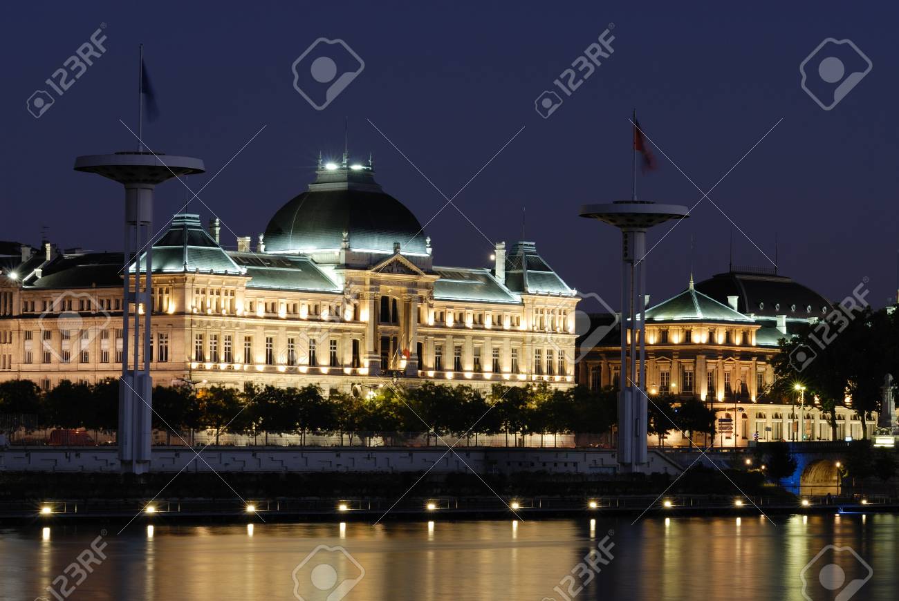 Francia Rhone Lione L Universita Cattolica Di Lione San Paolo Archivi Square Panorama Notturno Dell Universita Foto Stock Alamy