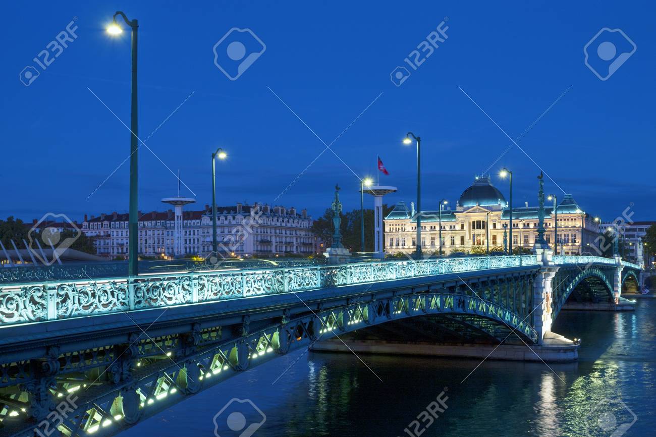 Immagini Stock Ponte Dell Universita Di Lione Lungo Il Fiume Rodano Alla Notte A Lione Francia Image