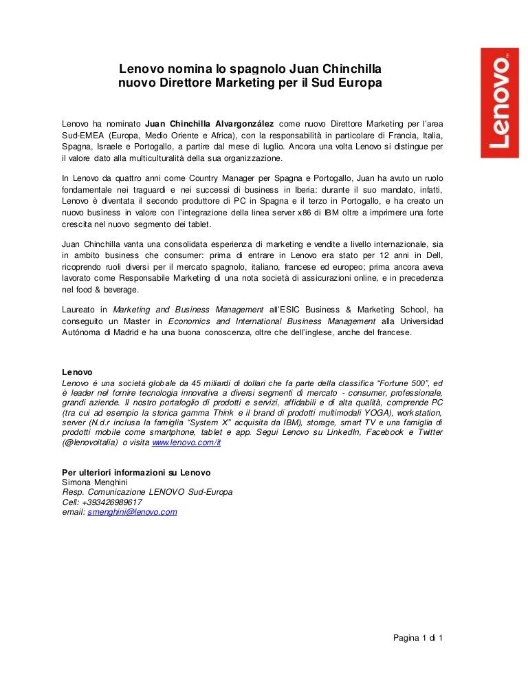 Lenovo Nomina Lo Spagnolo Juan Chinchilla Nuovo Direttore Marketing