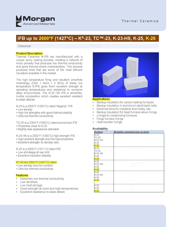 K 26 Insulating Firebrick 9 X 4 5 X 2 5 Etsy