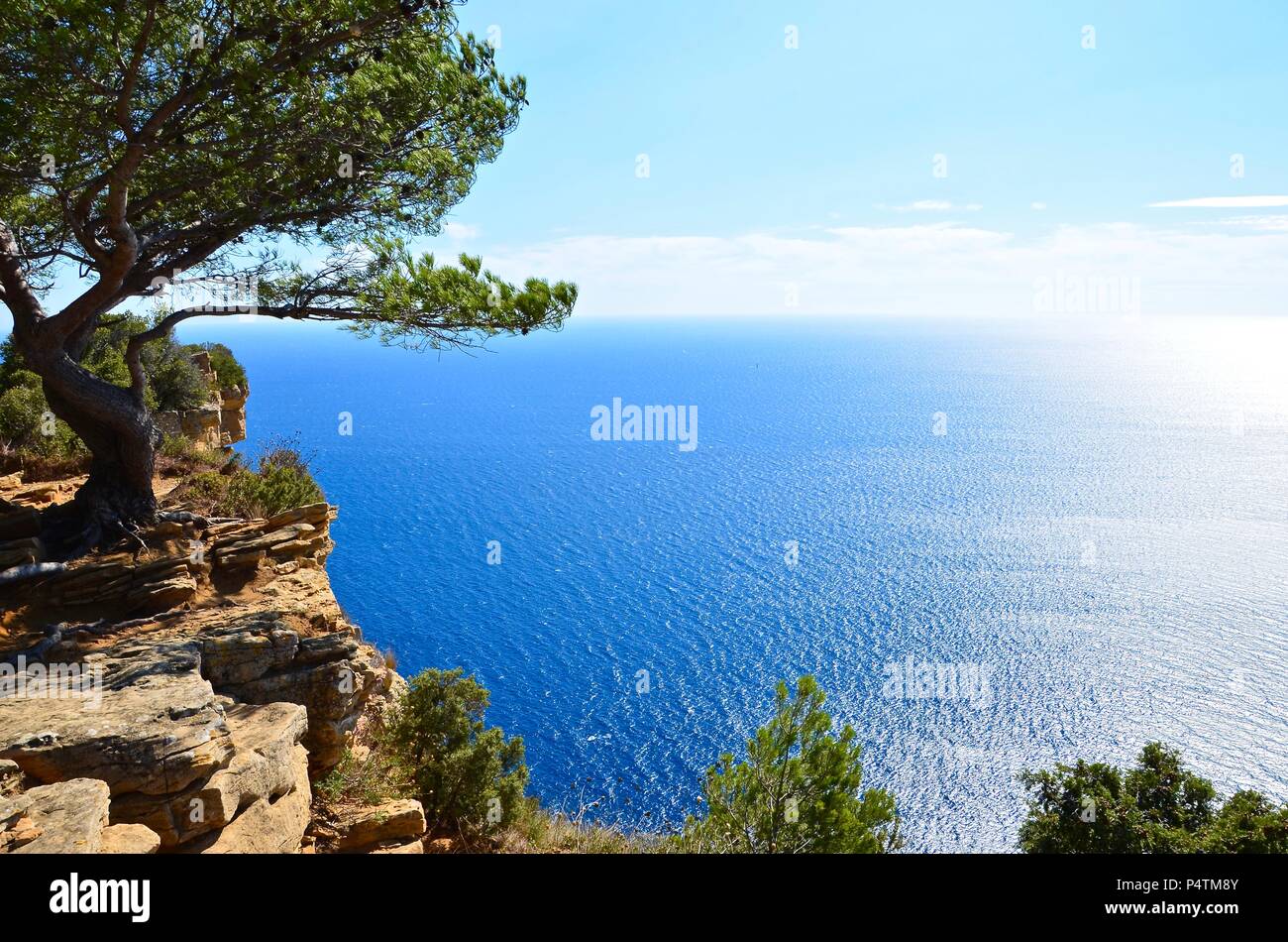 Vista Dalla Costa Vicino Alla Citta Di Cassis In Francia Del Sud Verso Il Color Turchese Del Mar Mediterraneo Luce Diurna Sun Riflessioni Di Conifere Foto Stock Alamy
