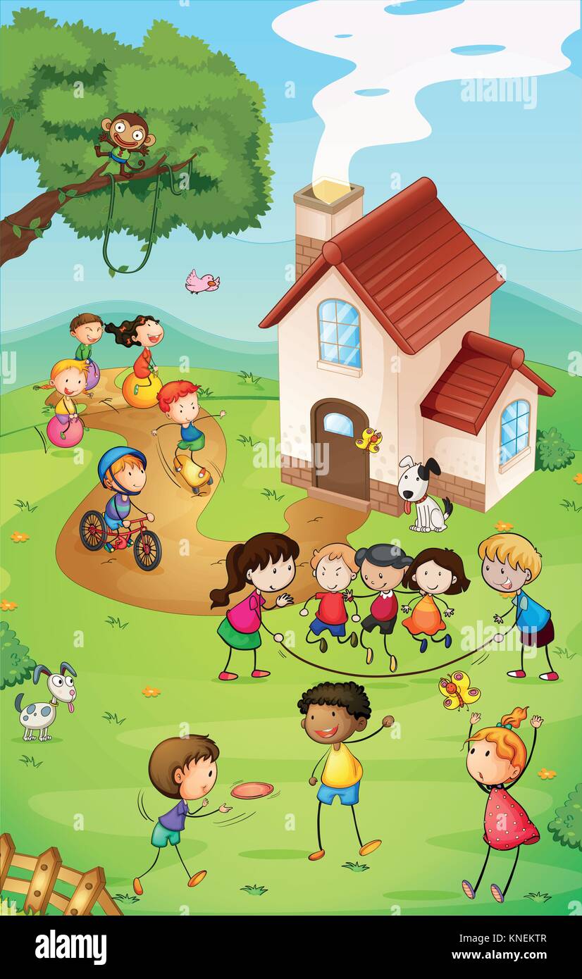 Illustrazione Di Un Parco Giochi Con Tanti Bambini Immagine E Vettoriale Alamy