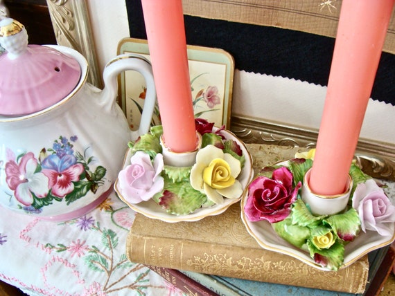 Vintage Coppia Denton Inglese Rosa Rose Fiori Candele Titolari Etsy