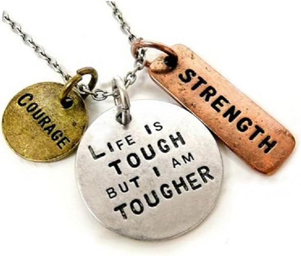 Argento Tono La Vita E Dura Ma Io Sono Piu Duro Coraggio Forza En Inglese Collana Con Pendente Incisa Diametro 2 5 Cm Con Catena Da 45cm Oro Tono Amazon It Gioielli