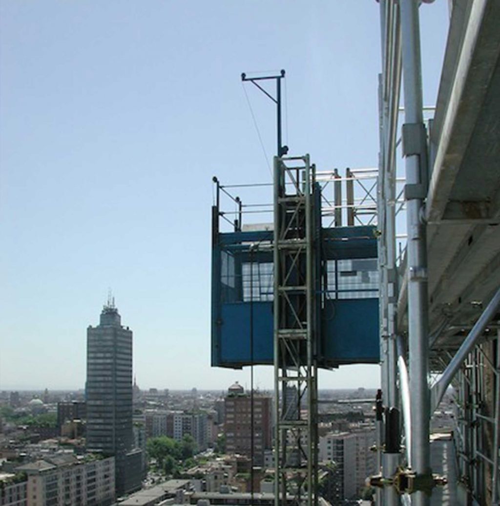 Gli ascensori da cantiere che non sono adibiti esclusivamente al trasporto di materiale devono essere provvisti di una cabina completa;. In dotazione all’azienda ci sono anche ponteggi autosollevanti e ascensori da cantiere Tutti i macchinari rispettano la normativa CE e sono in regola con il DL 626, coperti da polizze assicurative RCT e RCA e sottoposti con regolarità a sistemi di controllo e verifica. Ascensori montacarichi piattaforme di trasporto da cantiere ELECTROELSA pignone e cremagliera ponteggi restauro facciate manutenzione facciata sollevamento materiali e persone ponteggio eurohoist.