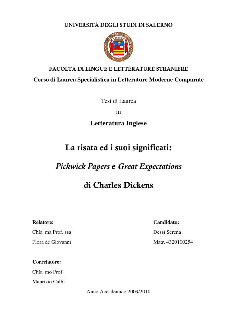 Universita Degli Studi Di Salerno Facolta Di Lingue E Letterature Straniere Corso Di Laurea Specialistica In Letterature Moderne Comparate Tesi Di Laurea In Letteratura Inglese La Risata Ed I Suoi Significati