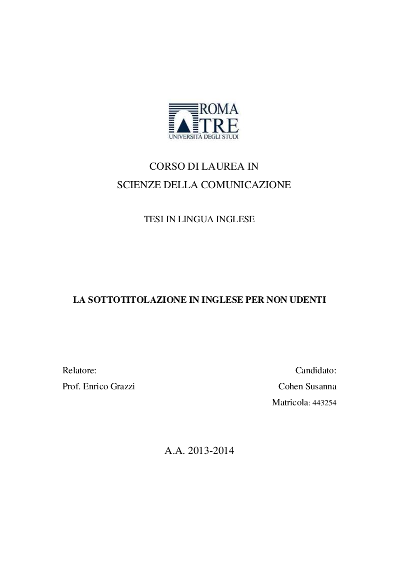 Corso Di Laurea In Scienze Della Comunicazione Tesi In Lingua Inglese La Sottotitolazione In Inglese Per Non Udenti Relatore Tesionline