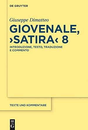 Giovenale Satira 8 Introduzione Testo Traduzione E Commento Texte Und Kommentare Vol 49 Italian Edition Ebook Dimatteo Giuseppe Amazon Ca Kindle Store