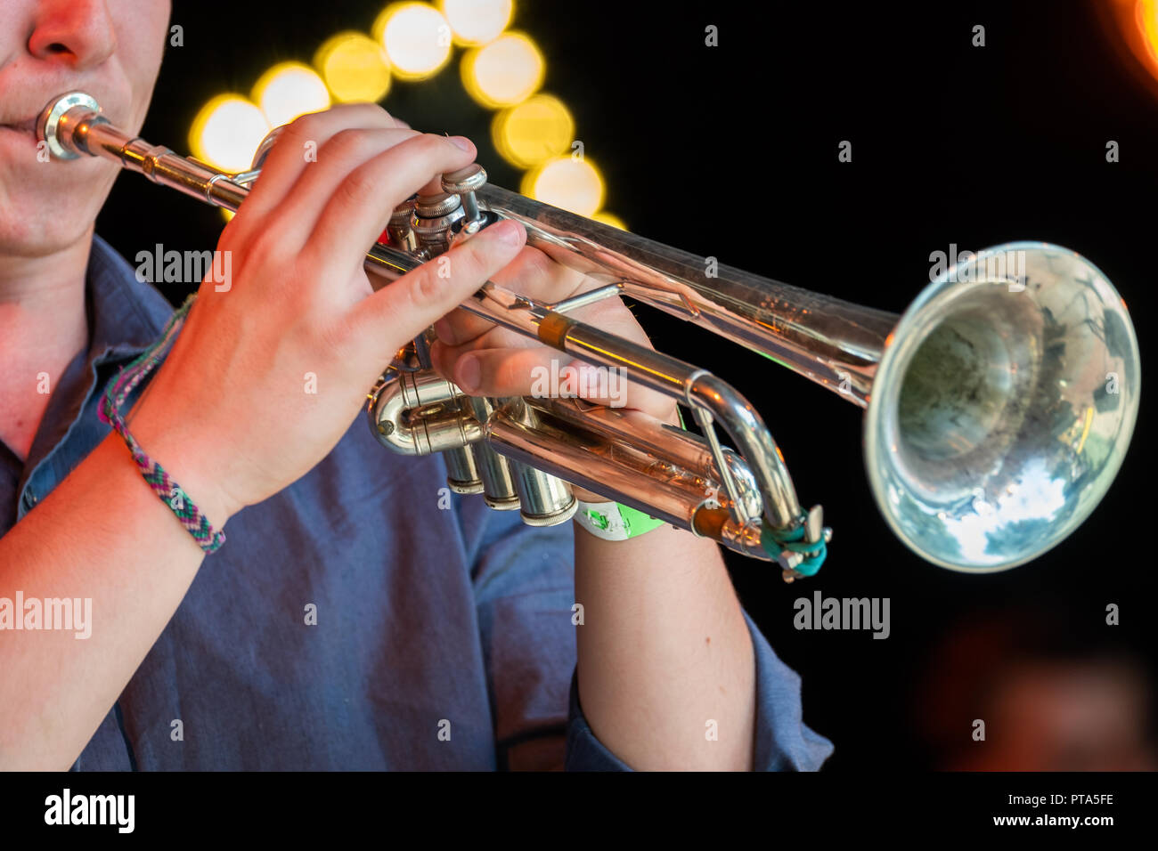 Musicista Suonare La Tromba In Concerto Dal Vivo Foto Stock Alamy