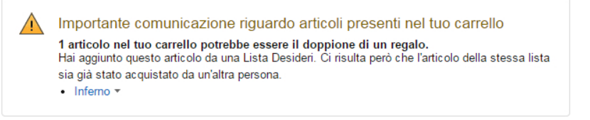 $38 100 bought this57% $8 $19 1,000 bought this94% $569 $99 1,000 bought this95% $14 $3 10,000 bought this Shop SMART SENSOR Shop Now85% Almost Gone!. Gestire la lista desideri A fronte dell'emergenza COVID19, come misura cautelativa a tutela della salute dei nostri esperti dell'assistenza, è operativo un team limitato di persone Ti ringraziamo. Un’interessante funzione interna alla Lista Desideri di Amazon è quella dell’avviso ogni volta che qualcuno acquisterà un oggetto presente nella vostra lista, infatti, nel caso in cui tentiate voi stessi in un secondo momento di acquistarlo, Amazon vi avviserà che qualcun altro se ne è già occupato e che quindi potreste ritrovarvi con un doppione.