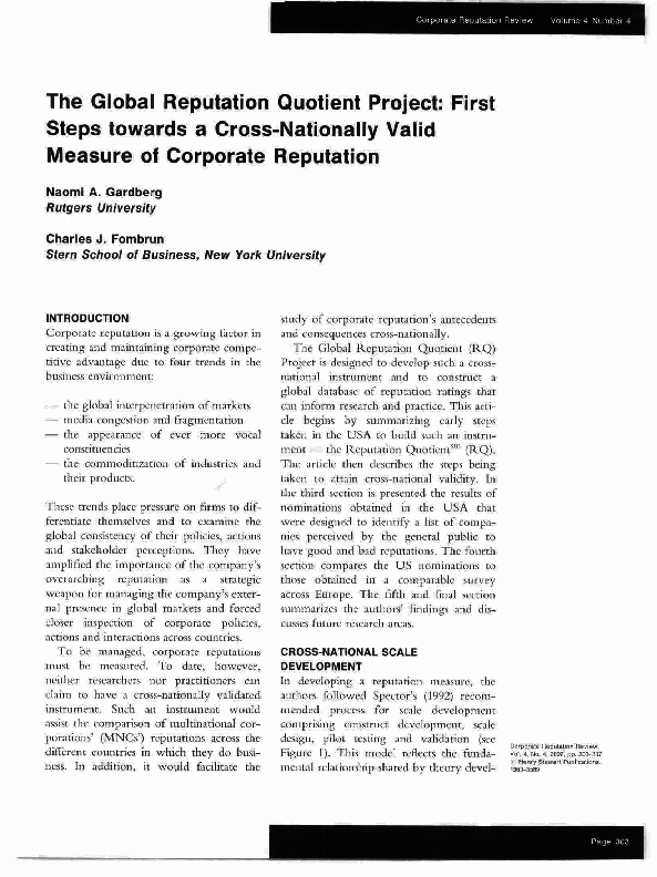 Pdf The Global Reputation Quotient Project First Steps Towards A Cross Nationally Valid Measure Of Corporate Reputation Charles Fombrun Academia Edu