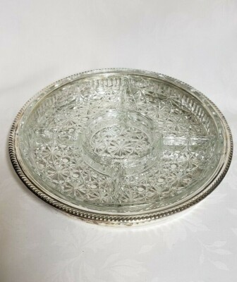 Vintage International Silver Plate Tray With Crystal Relish Etsy