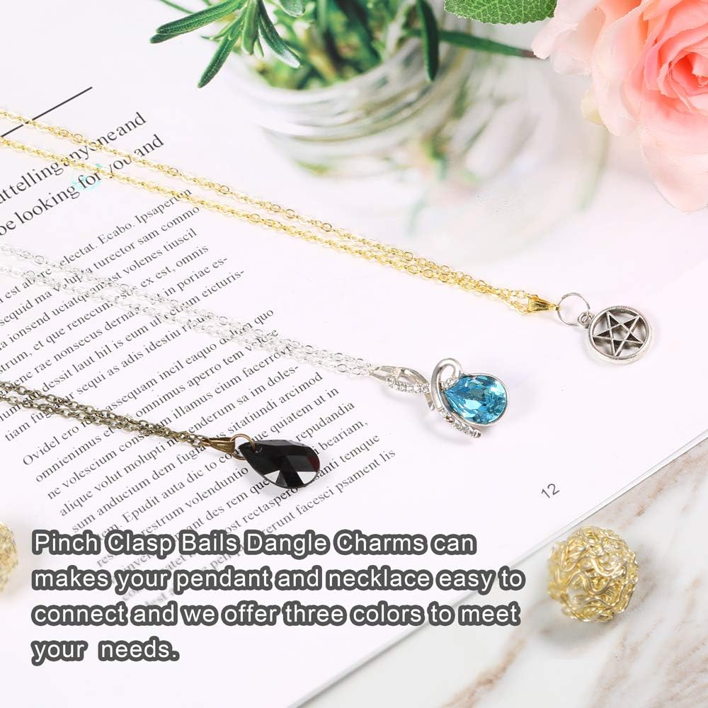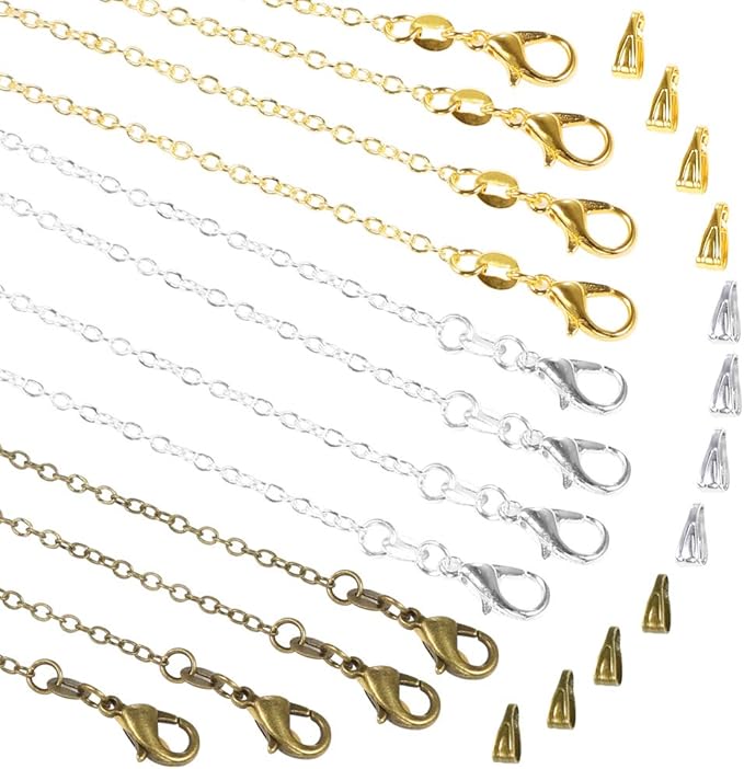 Amazon Com Pp Opount 30 Pack Necklace Chains In Gold Silver And Bronze Plated Bulk Cable Chain With 60 Pieces Pinch Clasp Bails Dangle Charms For Jewelry Making 18inch 1 2mm Arts Crafts Sewing