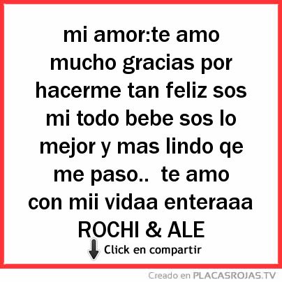 Mi Amor Te Amo Mucho Gracias Por Hacerme Tan Feliz Sos Mi Todo Bebe Sos Lo Mejor Y Mas Lindo Qe Me Paso Te Amo Con Mii Vidaa Enteraaa Rochi Ale