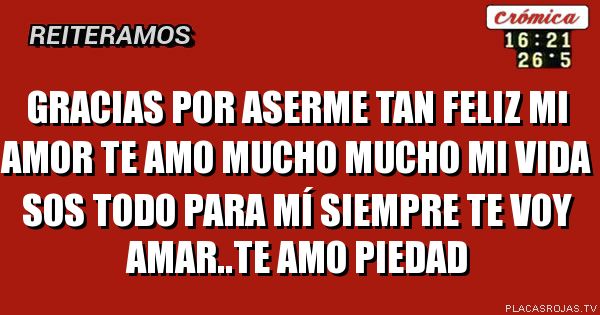Gracias Por Aserme Tan Feliz Mi Amor Te Amo Mucho Mucho Mi Vida Sos Todo Para Mi Siempre Te Voy Amar Te Amo Piedad Placas Rojas Tv