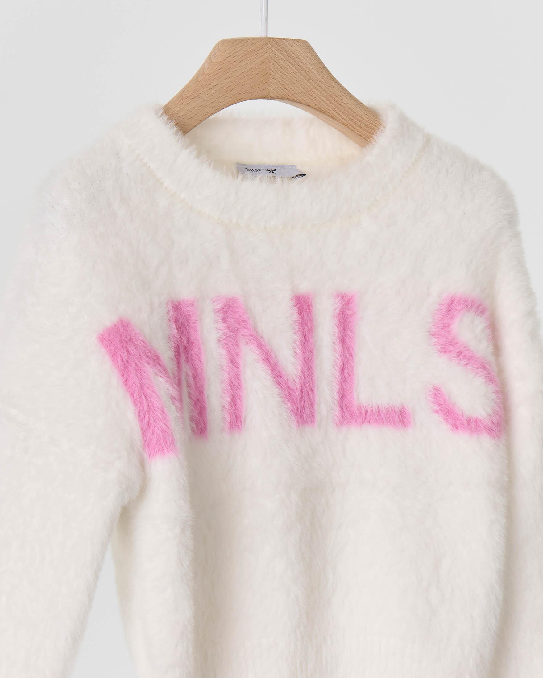 Maglia Bianca Girocollo In Tessuto Effetto Pelliccia Con Logo Sigla 4 12 Anni Pellizzari E Commerce