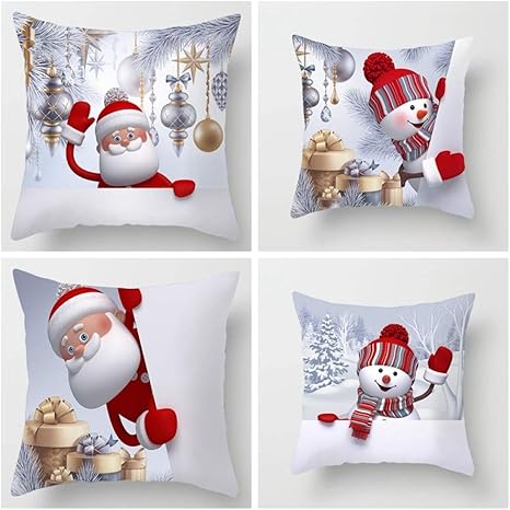 Fodera Per Cuscino Stampato 4 Pc Stampa Sigle Sided Poliestere Decorativi Di Natale Cuscini Caso Cartoon Pupazzo Di Neve Bel Santa Claus Cuscino 45cm X 45cm Copridivano Auto Home Decor Amazon It Amazon It