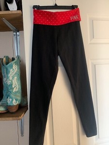 Xs Victorias Secret Pink Yoga Legging Nero Rosso Con Borchie Cotone Pantaloni Vacanza Rar Ebay