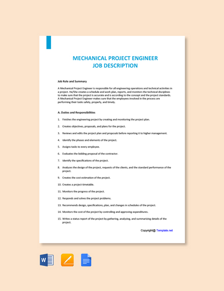 Free Mechanical Project Engineer Job Ad Description Word Google Doc Apple Mac Pages Job Description Template Mechanical Projects Job Ads