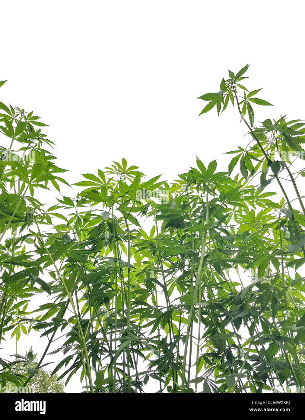 Fresco Verde Foglia Di Marijuana Di Sana Pianta Pianta Di Cannabis Cresce Su Sfondo Bianco Foto Stock Alamy