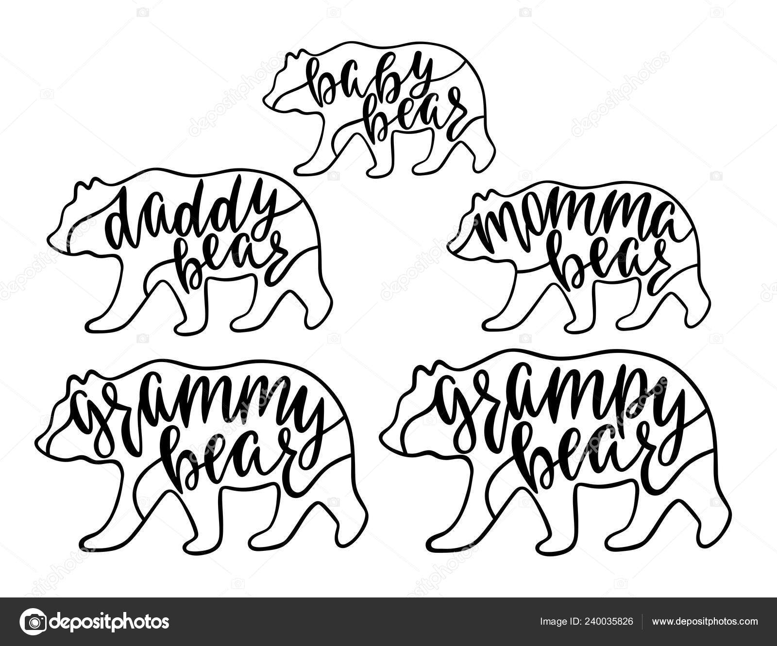 Momma Daddy Grampy Grammy Baby Bear Hand Drawn Typography Phrases With Bear Silhouettes Family Collection Stock Vector C Maroshka