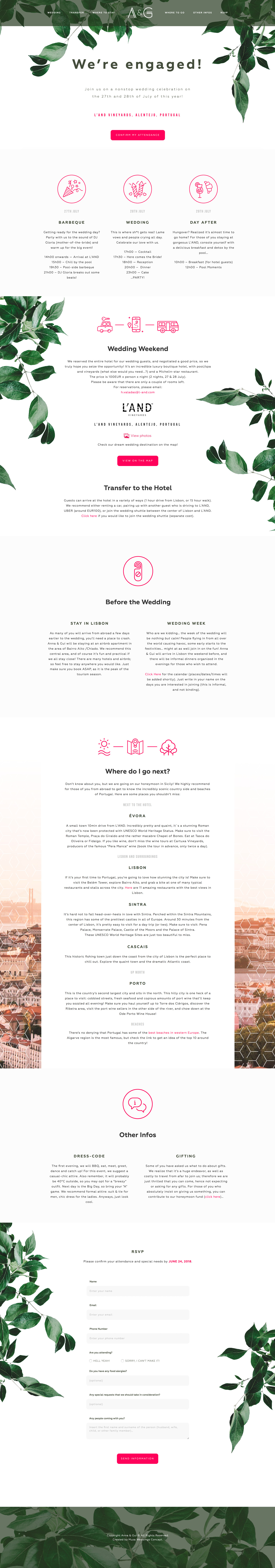 You can design your space from beginning to end thanks to the 50 available templates and designs Add content to your website in an easy and personalized way Your website allows you to share with your loved ones all the details of your wedding such as the wedding agenda with geolocalized maps, hotels and hairdressers nearby, wedding playslist, photo and video gallery, confirmations of attendance, among many other things.