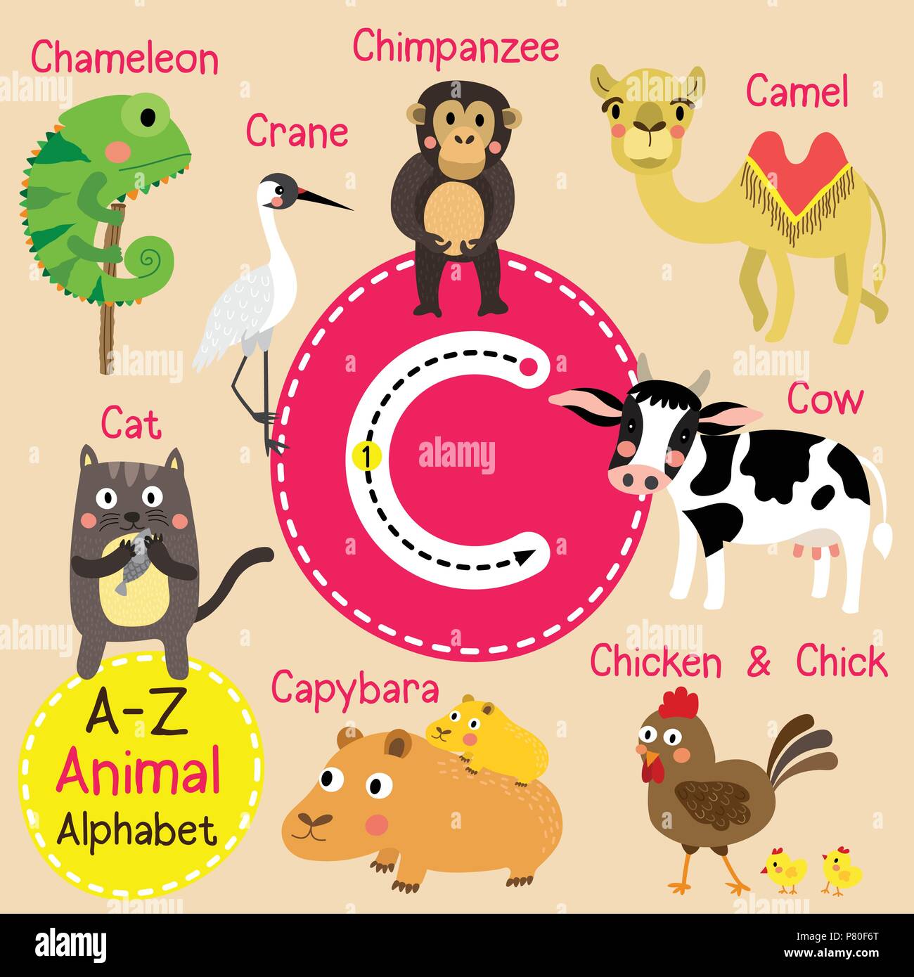 Carino Lo Zoo Per Bambini Alfabeto Lettera C Tracing Di Animale Divertente Cartone Animato Per Bambini Imparare Il Vocabolario Di Inglese Immagine E Vettoriale Alamy