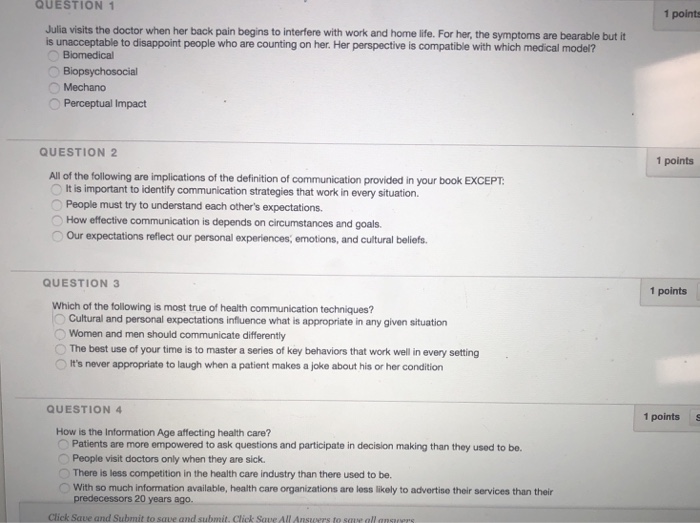Solved Question 1 1 Points Julia Visits The Doctor When H Chegg Com