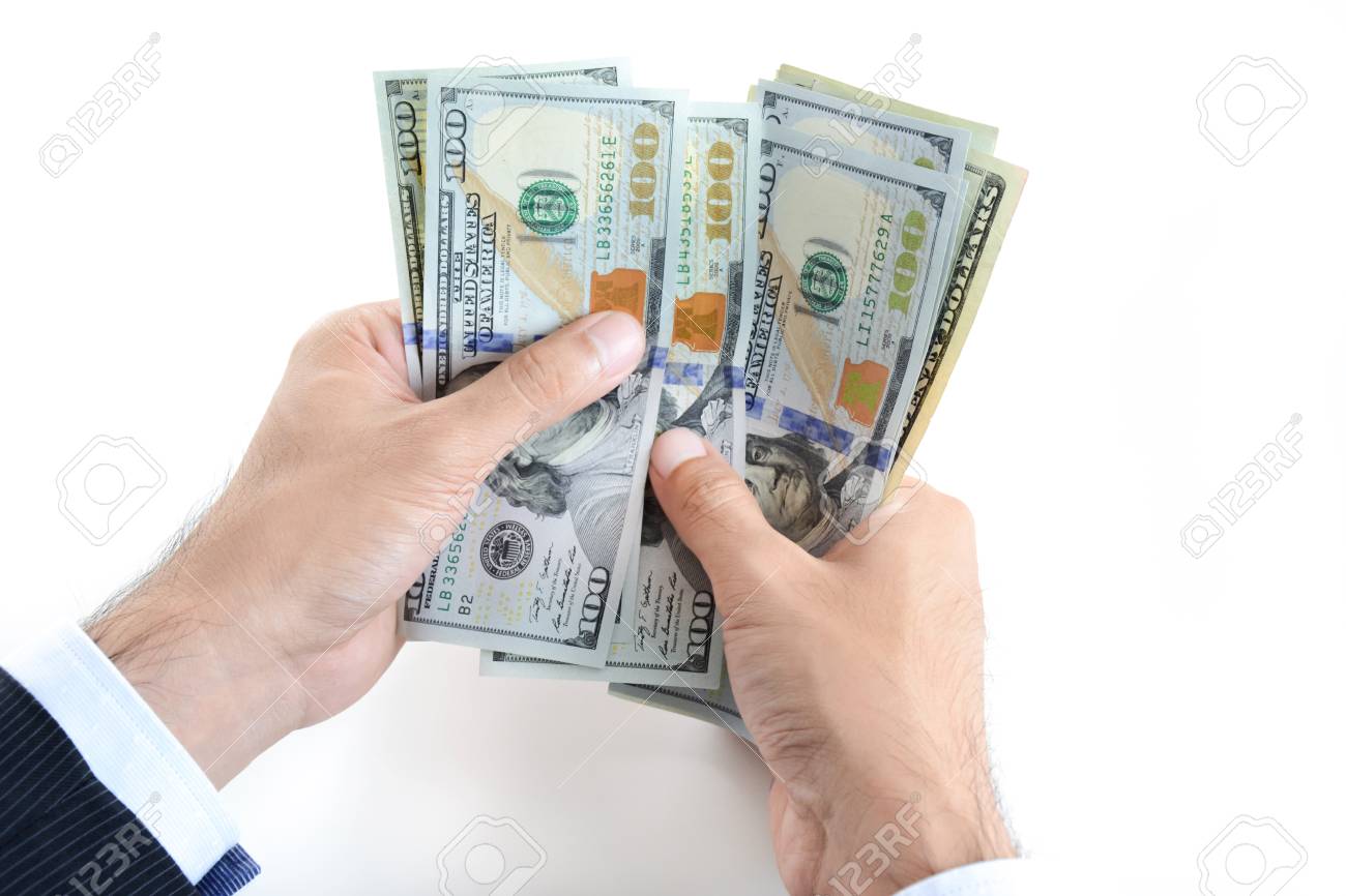 Immagini Stock Mani Dell Uomo D Affari Che Conta Soldi Fatture Del Dollaro Americano Usd Su Priorita Bassa Bianca Image