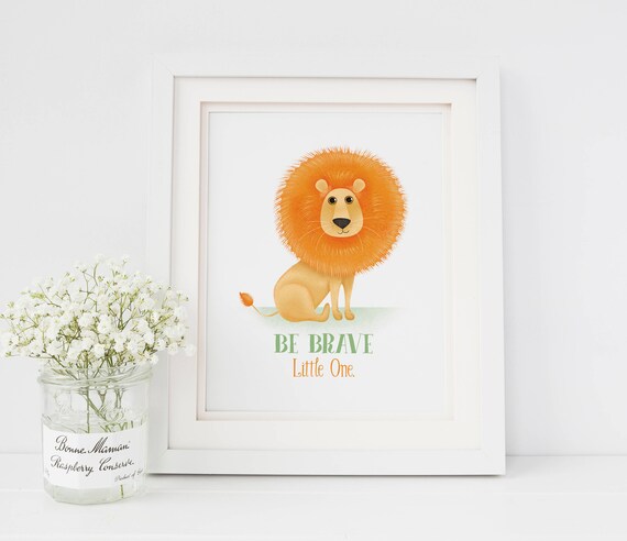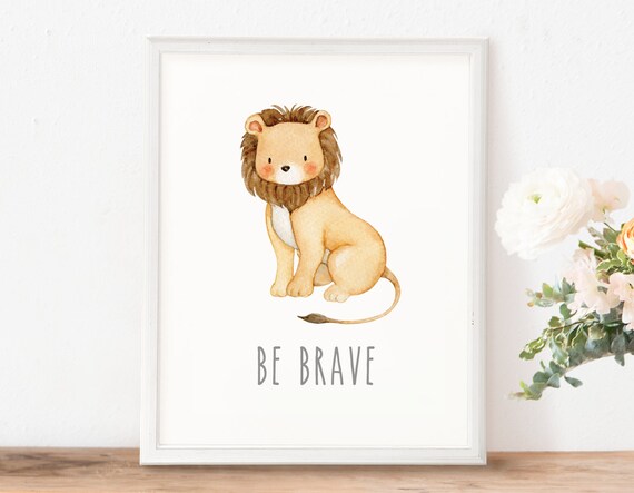 Be Brave Lion Animals Wall Print Nursery Art Print Nursery Etsy