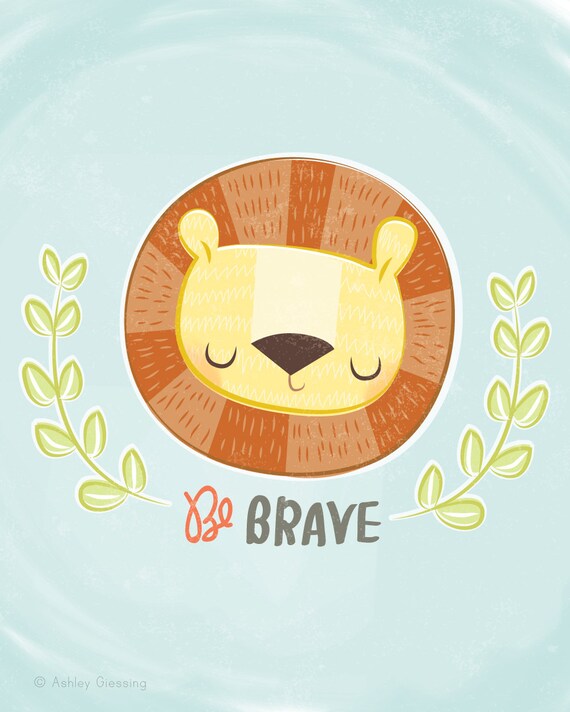 Be Brave Lion Children S Artwork Wall Art Nursery Decor Etsy